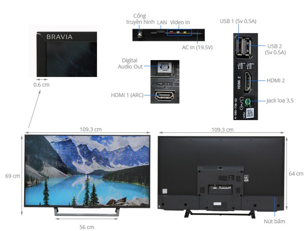 Kích thước màn hình 49 inch rộng rãi, bạn có thể linh hoạt bố trí ở phòng khách, phòng làm việc... đều được. Viền màn hình rất mỏng (chỉ 0.6 cm) sẽ càng thêm dáng vẻ thanh mảnh và đẳng cấp của tivi.