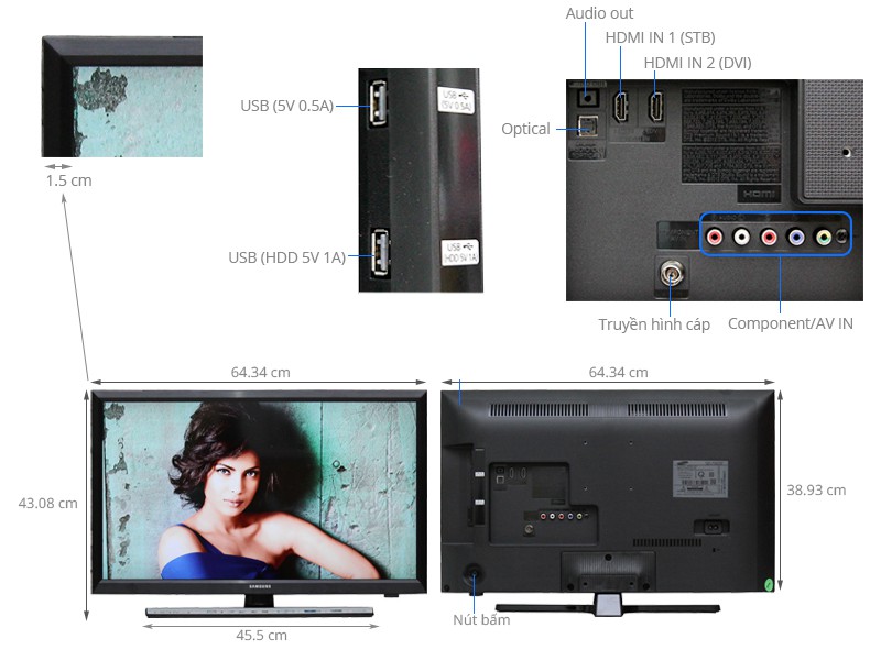 Tivi 28 inch này còn được thiết kế đặc biệt, trang bị bộ ba bảo vệ Triple Protectors của Samsung với khả năng tự bảo vệ và chống lại các tác nhân gây ảnh hưởng từ bên ngoài như độ ẩm, sấm sét, sốc điện,... (tính năng này chỉ hạn chế tác động, chứ không ngăn chặn 100%).