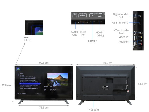 Kích thước màn hình 40 inch vừa đủ, treo tường hay để bàn đều phù hợp. Kiểu dáng sang trọng của tivi sẽ điểm tô ngôi nhà của bạn thêm đẹp mắt.