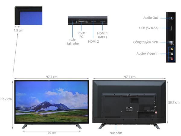 Nếu muốn kết nối tivi với dàn máy, loa, đầu đĩa bạn có thể dùng cổng AV Composite hoặc giắc loa 3.5 mm.
